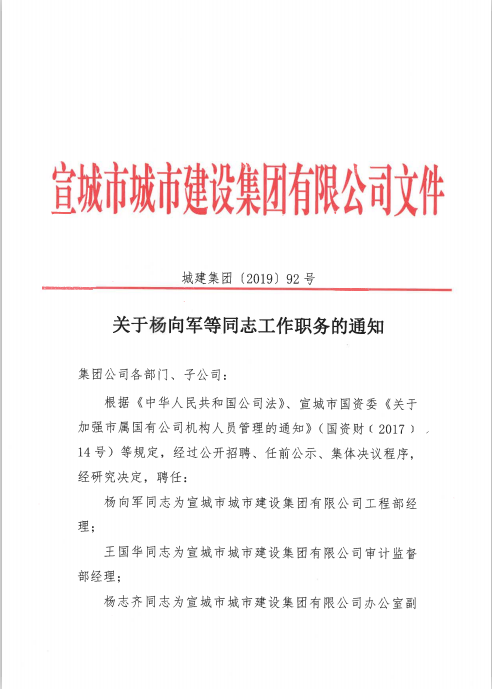 當前位置:首頁>> 人力資源>> 關于楊向軍等同志工作職務的通知